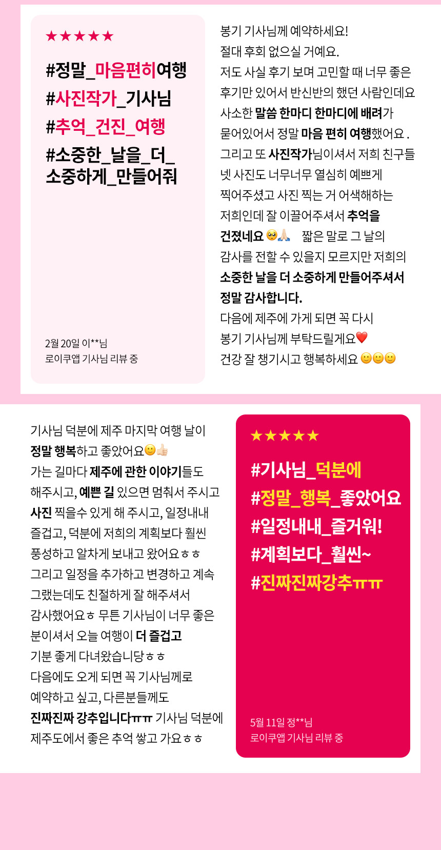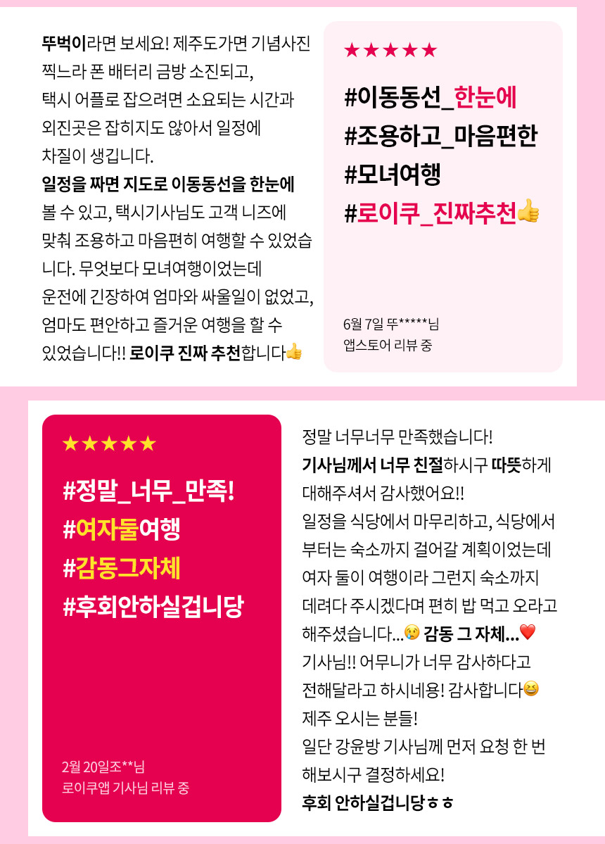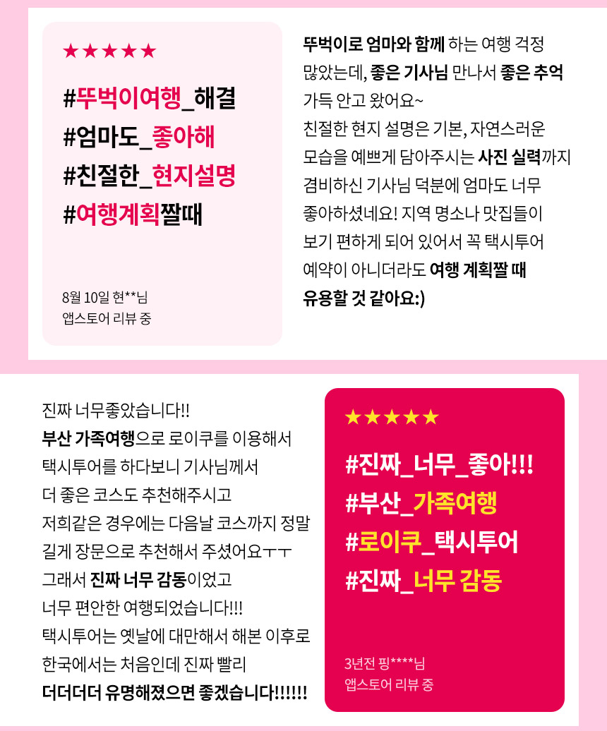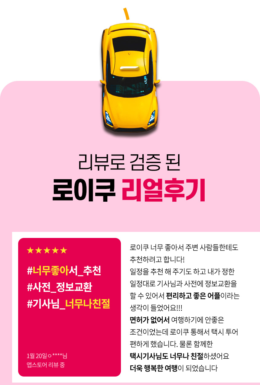 LOYQU移動應用提供更多功能。您可以透過城市推薦路線快速規劃行程,並透過評論選擇喜歡的司機。透過應用程式選擇您想去的城市、景點和司機,自由享受您的旅行。